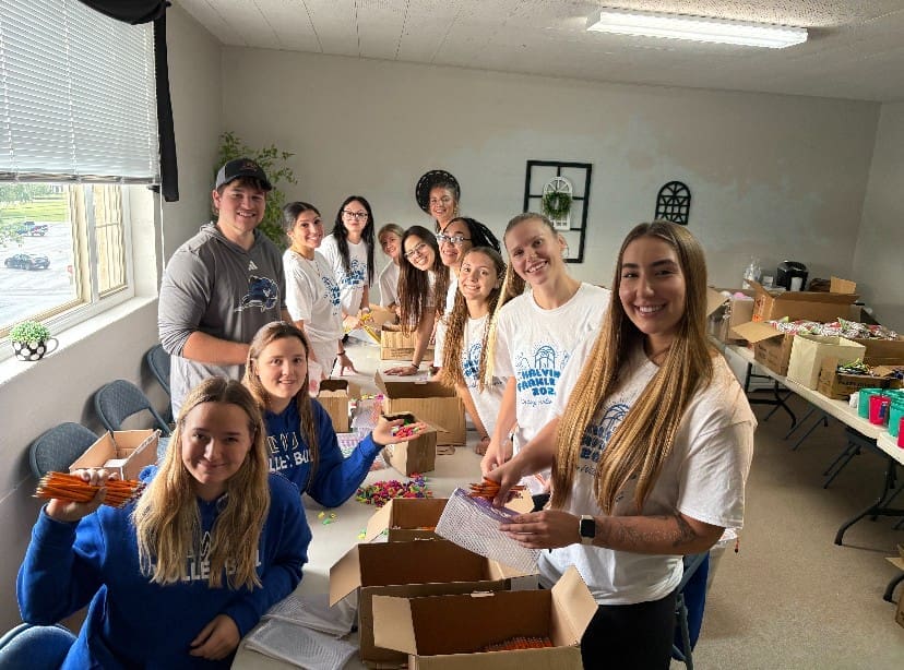 LWU Volleyball Players, Coaches Pack Operation Christmas Child Shoebox Gifts On Malvina Farkle Day