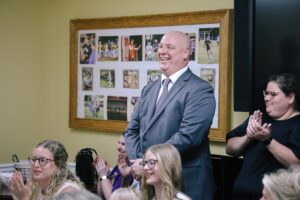 The announcement marked a memorable and celebratory evening for the district and community. Mr. Petett was joined by his wife, children, and mother, along with several other family members and close friends who gathered to witness this important milestone. Their presence highlighted the strong personal and professional connections Mr. Petett has built throughout his life and distinguished career.