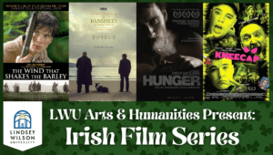 The Lindsey Wilson Arts and Humanities Irish Film Series will screen four Irish films that deal with Ireland’s struggle for independence from four different perspectives. The screenings will be: The Wind That Shakes the Barley on Jan. 27; The Banshees of Inisherin on Feb. 3; Hunger on Feb. 10; and Kneecap on Feb. 17. All four screenings — which are free and open to the public — will begin each time at 7:30 p.m. CT in W.W. Slider Humanities Center Recital. The films are intended for high school-age audiences and older.