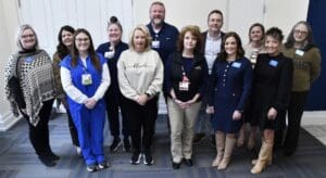 Members of the Lindsey Wilson University nursing program met with members of the program’s Community of Interest on Friday, Feb. 27, at the university’s Roberta D. Cranmer Dining & Conference Center. From left: LWU faculty member Roslin Bradshaw; LWU Assistant Director of Nursing Dr. Angie Johnson; Shelby Hatcher, Community of Interest member; Rhonda Pitcock, Community of Interest member; Rhonda Knight, Community of Interest member; Brandon Dickey, Community of Interest member; Sandy Russell, Community of Interest member; Jamie Wilkerson, Community of Interest member; LWU Director of Nursing Dr. Emiley Button; Katrina Wood, Community of Interest member; Kristen Branham, LWU nursing faculty; and Susan Vickous, LWU nursing faculty.
