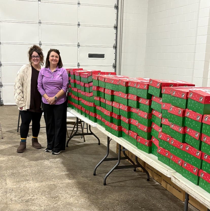 The Calvary Temple Church packed these beautiful shoebox gifts. Making the drop off of the shoebox gifts were Valarie South and Trina South.