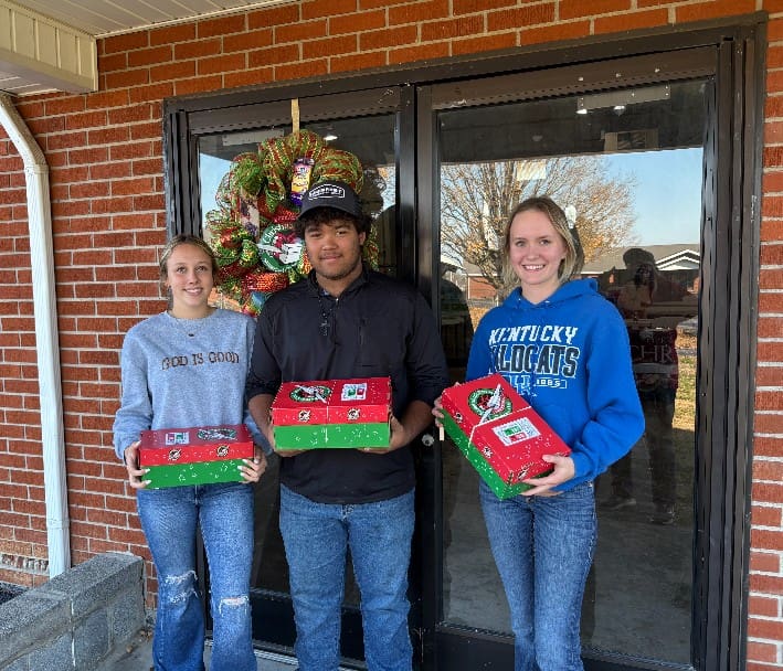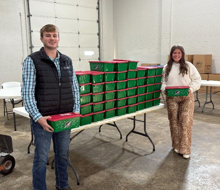 Kaden Richard and Ally Brown put the Adair County total over 3,000 with their delivery. They dropped off these beautiful plastic boxes from Jones Chapel Church.