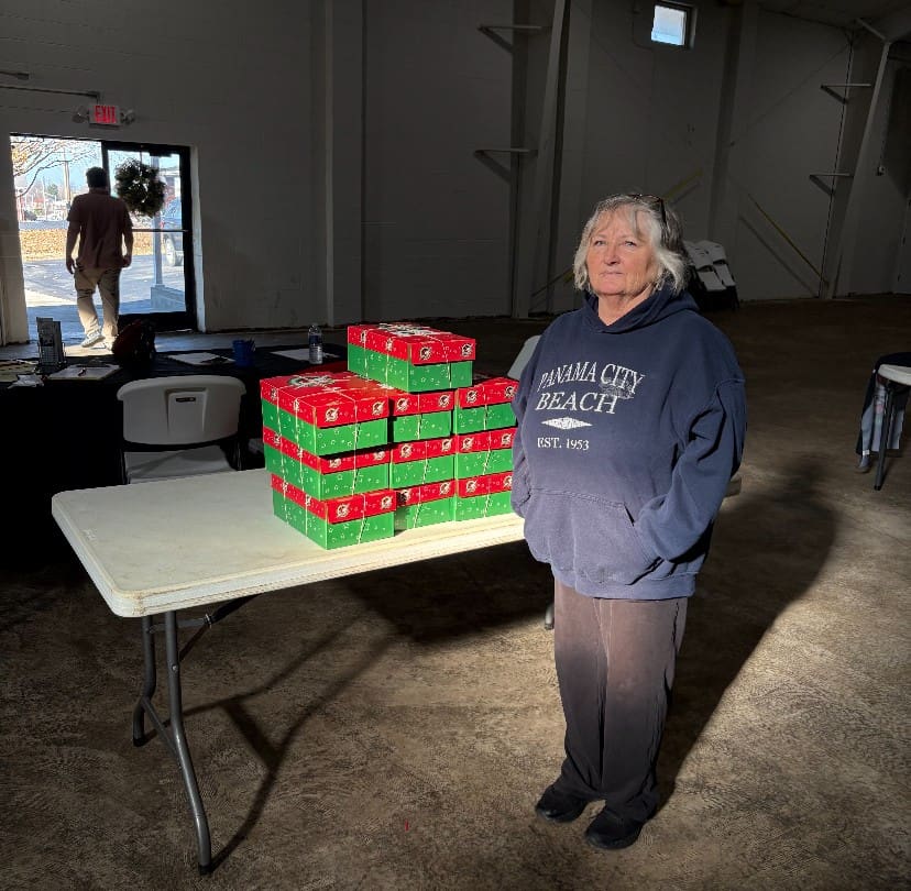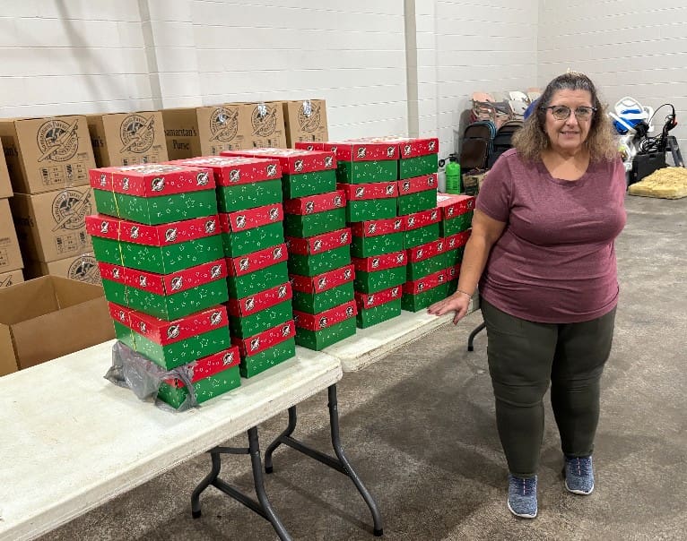 Shirley Jones has been packing individual shoeboxes for OCC for several years.