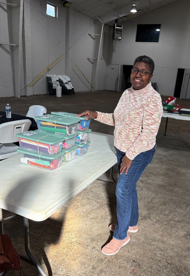 Delaine Corbin dropped off boxes that were packed by Little Cake Christian Church.