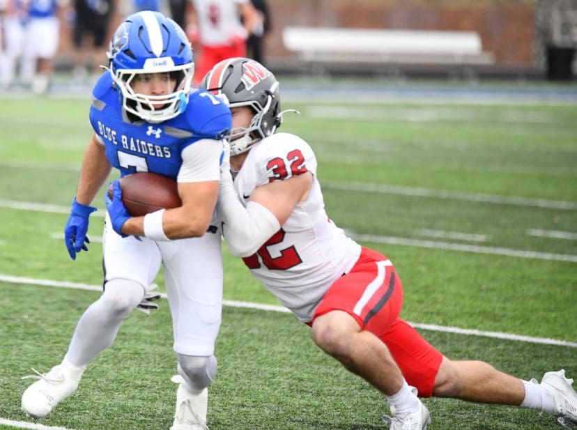 COLUMBIA, KY. (11/30/2025) Four record-setting performances by Blue Raiders keyed No. 7-ranked Lindsey Wilson University’s comeback from a 24-point deficit in the first half to beat No. 10-ranked Indiana Wesleyan University 57-31 in the second round of the NAIA Football Championship Series, played on Saturday, Nov. 29, at Parnell Family Stadium.