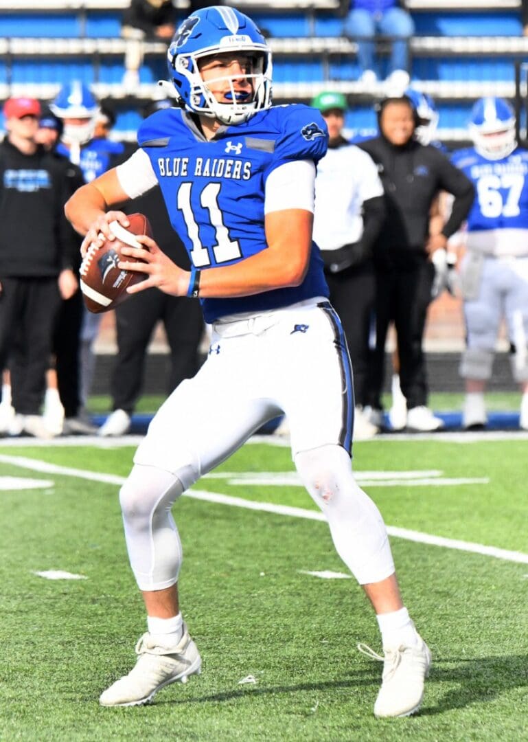 No. 7-ranked Blue Raiders overcome 24-0 deficit to beat No. 10-ranked Indiana Wesleyan University 57-31 in NAIA second-round game played at Parnell Family Stadium.