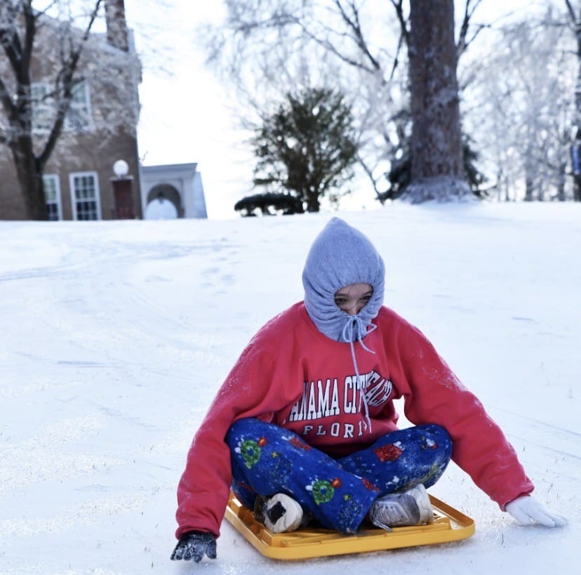 Jenesis Bowling ’29 was another LWU student who enjoyed the thrill and excitement of sledding down the hill behind Keefe Hill. She said the experience “was great, but halfway through the sled was not under me.”