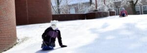 Jenesis Bowling ’29 was another LWU student who enjoyed the thrill and excitement of sledding down the hill behind Keefe Hill. She said the experience “was great, but halfway through the sled was not under me.”